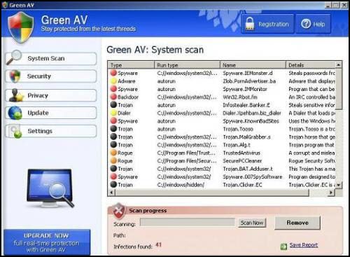 This Automatic Green AV virus Removal Tool will fast and completely detect and delete all associated malicious components to save your time and hassle.