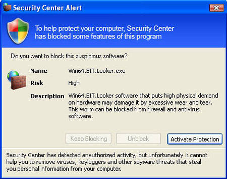 Win64.BIT.Looker.exe is a bogus detection reported by a fake security application known as AntiVirus Studio 2010. As soon as AntiVirus Studio 2010 intrudes into your PC, it will surely begin to bombard you with numerous popup alerts and scan results. The rogueware attempts to persuade youto provide your credit card information on its fake payment page which is the main purpose of its creators. Win64.BIT.Looker.exe is a vivid exemplification. AntiVirus Studio 2010 creates a phony Security Center Alerts reporting the detection of Win64.BIT.Looker.exe worm on your PC. Win64.BIT.Looker.exe will take up most of your computer resources and finally make your PC impossible to use. If you click on its button on the alert, you will be going to its payment processing page and pay for its fake license. You should not pay for this scamware in any circumstance. Please follow our removal guide to remove AntiVirus Studio 2010 and Win64.BIT.Looker.exe as soon as possible.